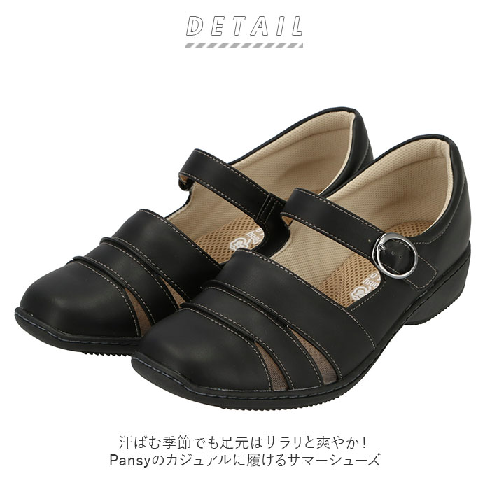 サンダル レディース 夏 通販 履きやすい ストラップサンダル 疲れにくい 歩きやすい 吸汗 吸湿 消臭 おしゃれ かわいい シンプル メッシュ インソール パンジー Pansy 3e 脱ぎ履き簡単 カジュアル 春夏 靴 24cm ブラック Backyard Family Jre Pointが 貯まる