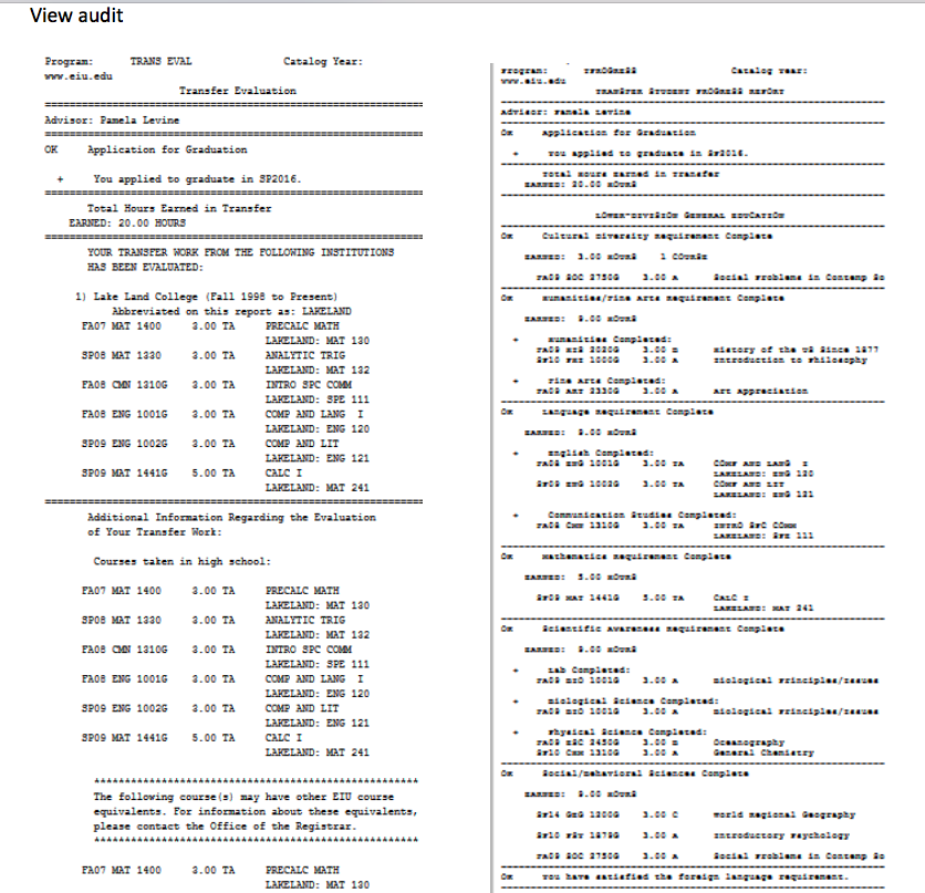 Eastern Illinois University Dars Advisor Guide To Trans Eval And Tprogress